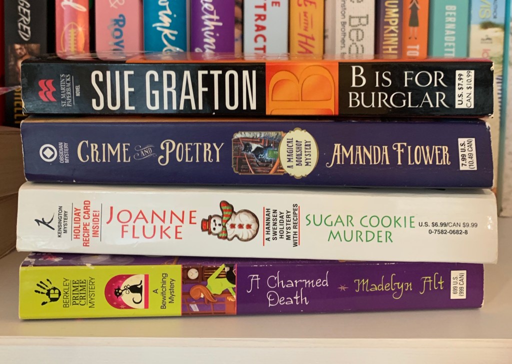 A bunch of my friends on instagram keep posting bout their love of cozy mysteries so I picked up a few of those and one Holiday cozy mystery as well! I have also been on the hunt when I go book thrifting for the first book in Sue Grafton’s series but B is the closest I have ever come.